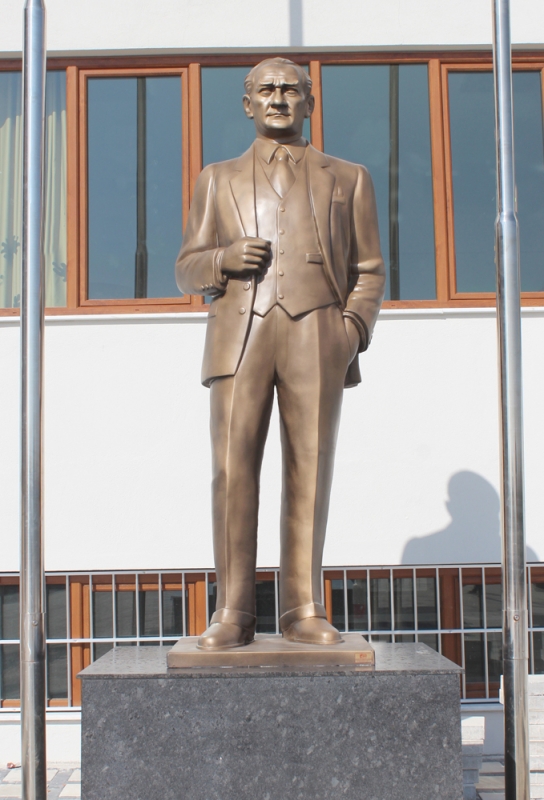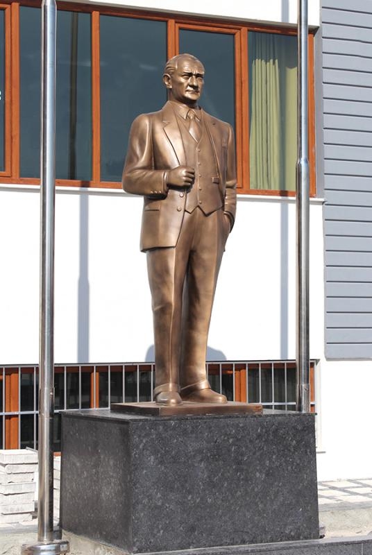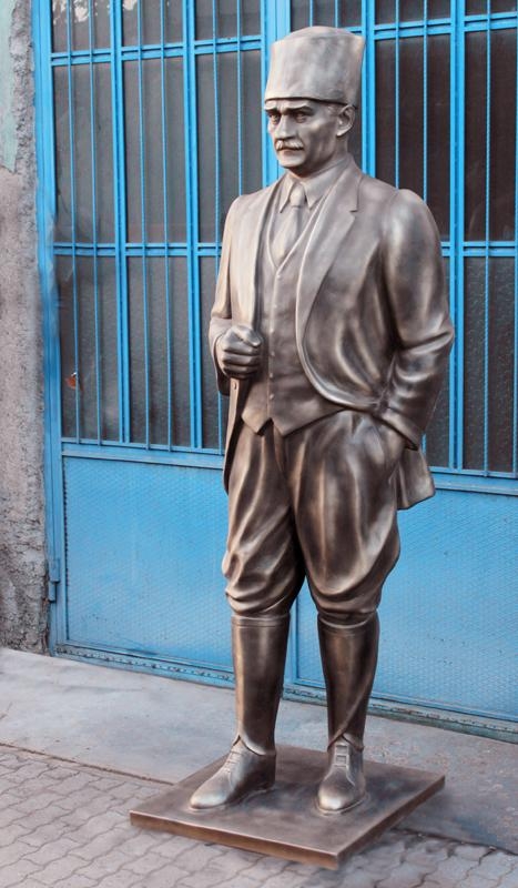 Atatürk heykeli yapımında fiber, bronz, mermer, ahşap, polüüretan gibi farklı malzemeler kullanılabilir. Atatürk heykeli yapan sanatçılar Atatük'ün farklı fotoğraflarından faydalanırlar. Atatürk heykeli yapanlar, Atatük'ün kıyafeti, vücut duruşu, ve özellikle yüz ifadesine dikkat ederler. Sivil Atatürk heykeli veya askeri kıyafetli Atatürk heykeli olarak iki çeşit düşünebiliriz. Fiber Atatürk heykeli yapımı, Fiber Atatürk heykeli yapanlar, Fiber Atatürk heykeli fiyatları, Atatürk heykeli yapımı, Atatürk heykeli imalatı, Atatürk heykeli üretimi hakkında arayarak veya maille bilgi alabilirsiniz. Atatürk heykeli fiyatlarını mail atarak veya arayarak öğrenebilirsiniz. Atatürk heykeli satışı ve siparişi için lütfen iletişime geçiniz.