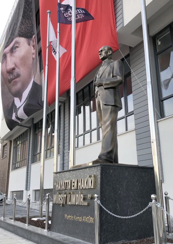 Atatürk'ün fikirleri ve liderliği, Dora Sanat Heykel Atölyesi'nin sanatçılarına ilham veriyor. Ülkemizin dört bir yanına ve dünyanın farklı bölgelerine yayılan bu özgün heykeller, modern sanatın dilini kullanarak, Atatürk'ün mirasını yaşatmayı amaçlıyor. Bu eserler, aynı zamanda okullarımız için anlam yüklü birer eğitim aracı olma özelliğini taşıyor.