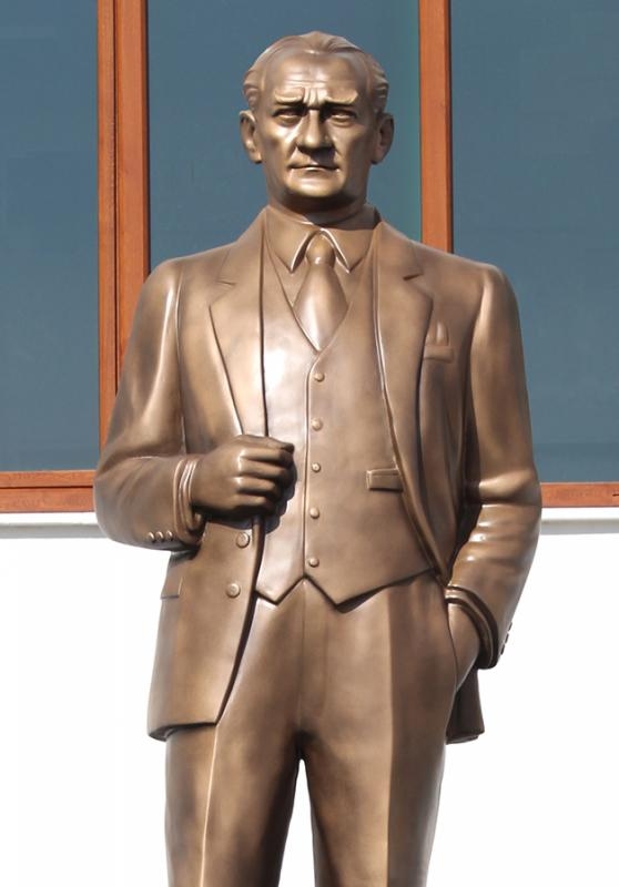 Atatürk heykeli yapımında fiber, bronz, mermer, ahşap, polüüretan gibi farklı malzemeler kullanılabilir. Atatürk heykeli yapan sanatçılar Atatük'ün farklı fotoğraflarından faydalanırlar. Atatürk heykeli yapanlar, Atatük'ün kıyafeti, vücut duruşu, ve özellikle yüz ifadesine dikkat ederler. Sivil Atatürk heykeli veya askeri kıyafetli Atatürk heykeli olarak iki çeşit düşünebiliriz. Fiber Atatürk heykeli yapımı, Fiber Atatürk heykeli yapanlar, Fiber Atatürk heykeli fiyatları, Atatürk heykeli yapımı, Atatürk heykeli imalatı, Atatürk heykeli üretimi hakkında arayarak veya maille bilgi alabilirsiniz. Atatürk heykeli fiyatlarını mail atarak veya arayarak öğrenebilirsiniz. Atatürk heykeli satışı ve siparişi için lütfen iletişime geçiniz.