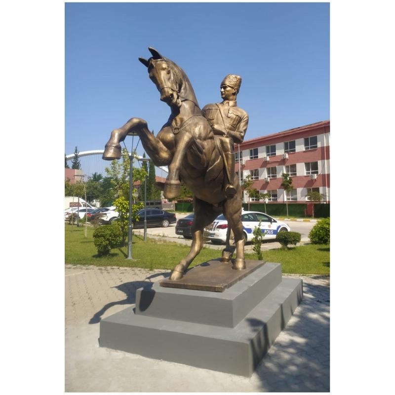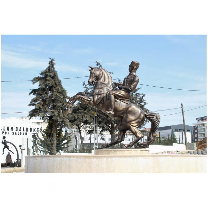 At üstünde Atatürk heykeli fiyatlarını Atatürk heykeli yapımında kullanılan malzemeler belirler. Kalpaklı Atatürk, Sivil Atatürk heykeli, at üstünde Atatürk heykeli çelşitlerimiz vadır. Okullar için sivil kıyafetli Atatürk heykeli, kalpaklı Atatürk heykeli ve at üstünde Atatürk heykeli satın almak için lütfen iletişime geçiniz.